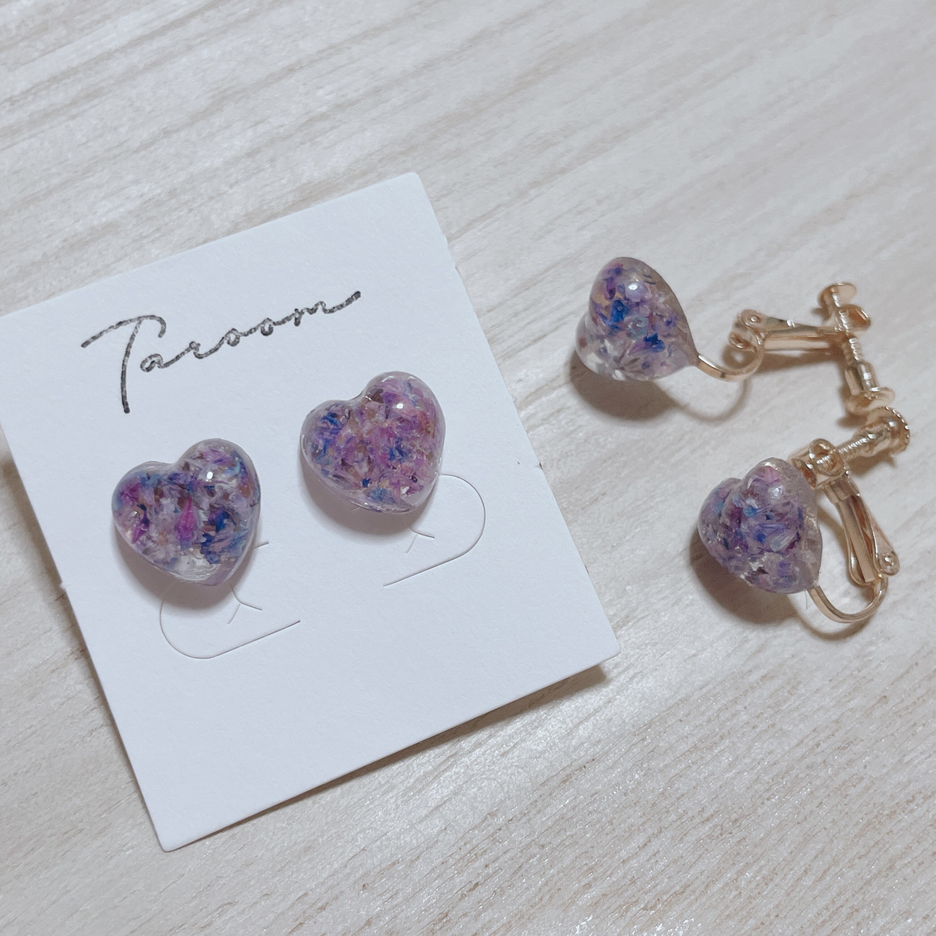 ハートピアス/イヤリング 紫陽花カラーの登場です!.*・゚