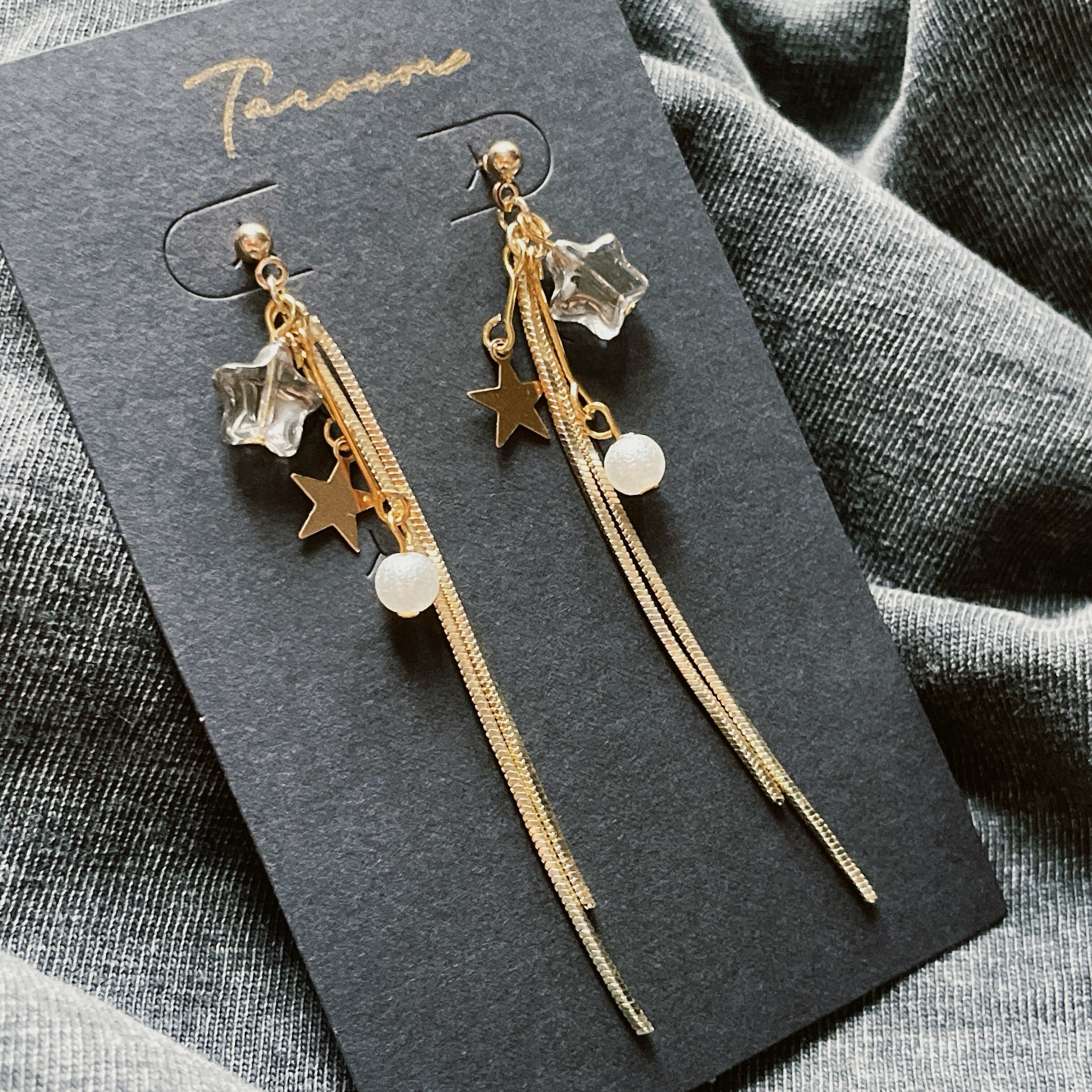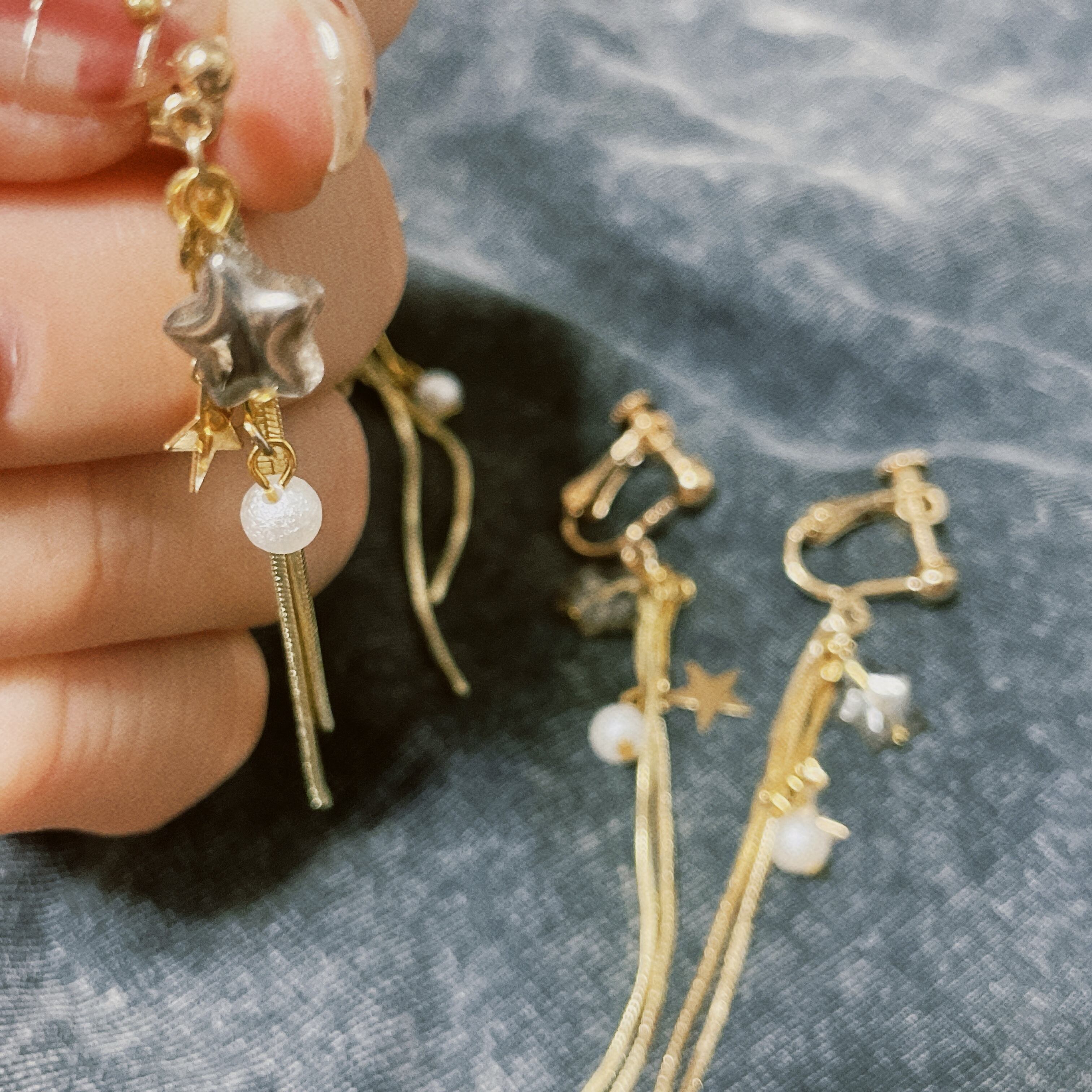 ゴールドのチェーンが控えめに流れるようなデザインで、流れ星を思わせるアイテムです☆≈