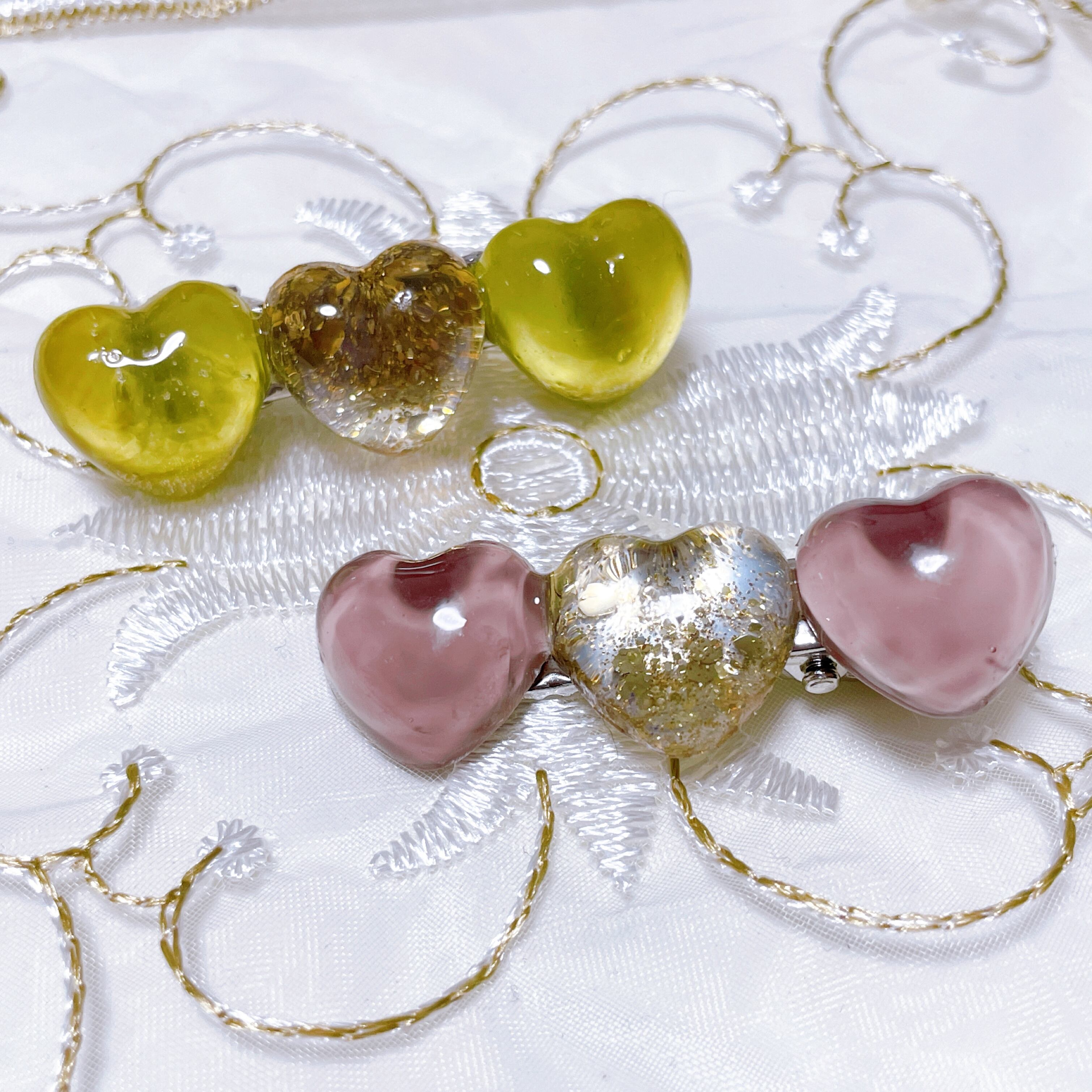 ハートが3連になったキュートなヘアクリップです!