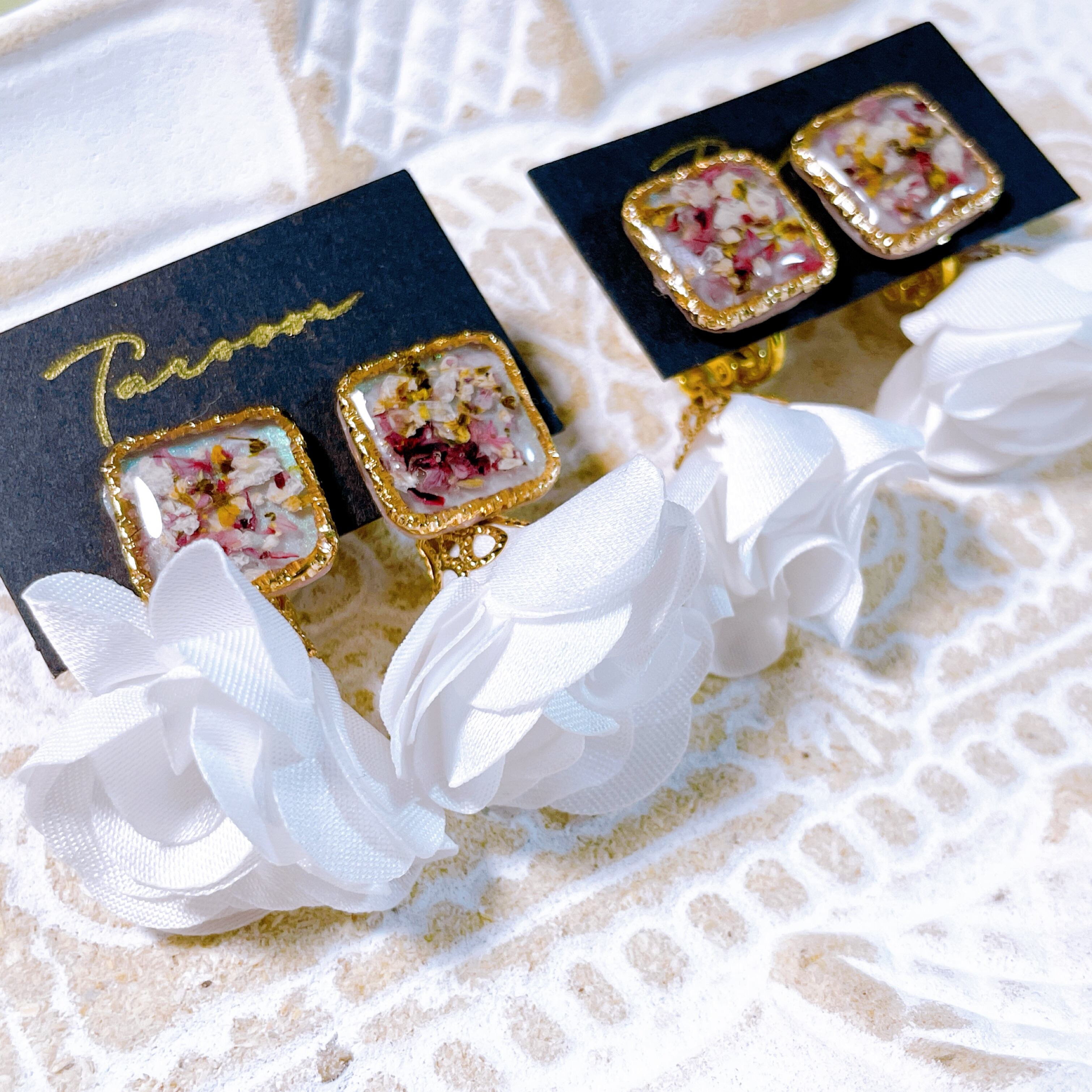 ドライフラワーを閉じ込めた 可愛らしいアイテムです♡