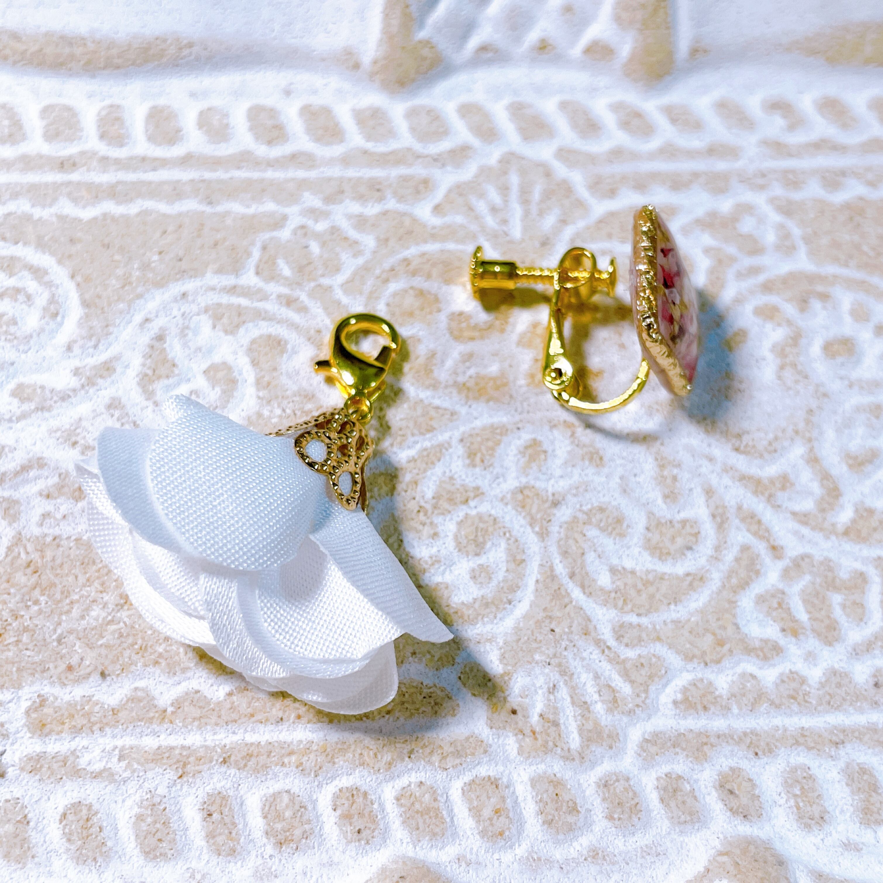 キャッチを付けると白のシフォンがふんわりとした印象を与え、どんなコーディネートも華やかになりますよ(*^^*)