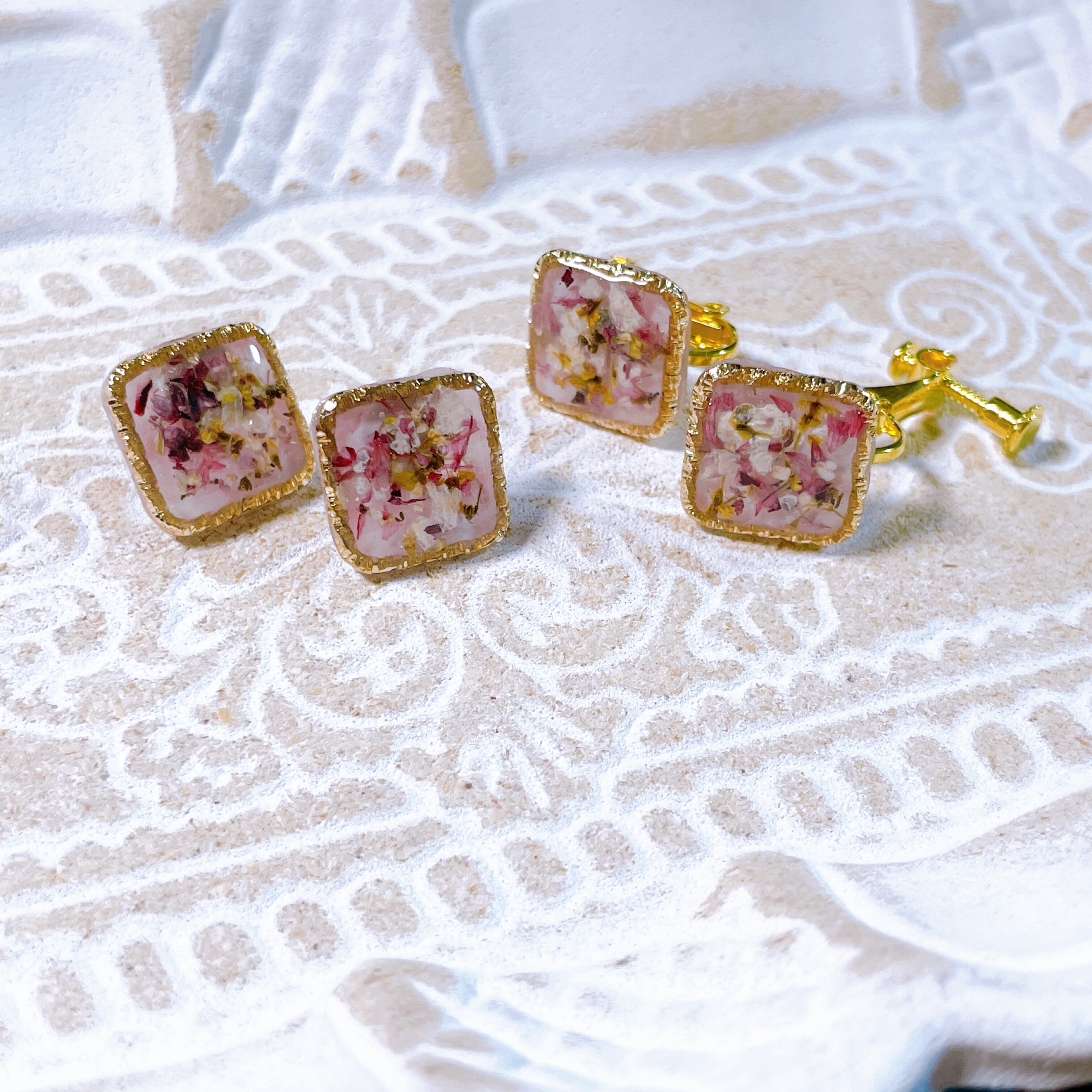 シンプルなスクエアピアスとして楽しめます♪.*・゚